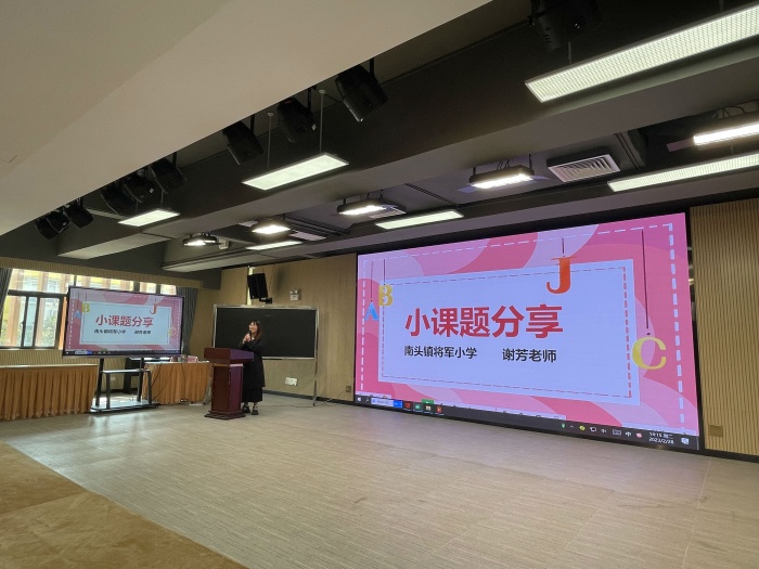活动开始,首先由将军小学谢芳老师进行小课题的分享。谢老师结合自己的获奖课题从“什么是小课题?”“怎样做小课题?”“为什么做小课题?”这三个方面为大家作了详细的分享。