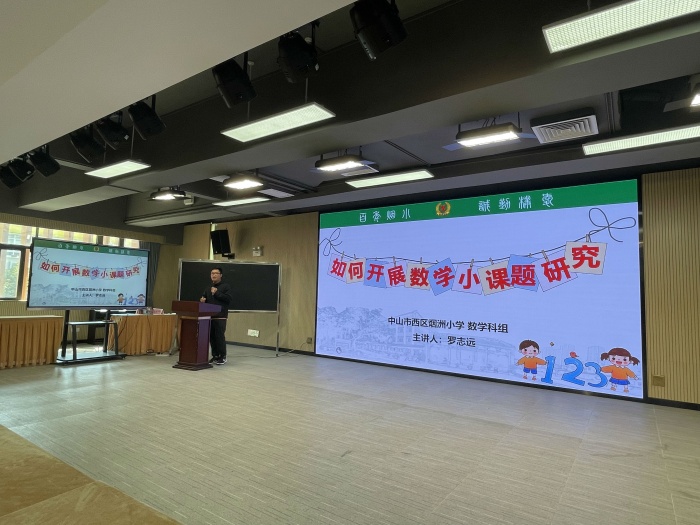 为进一步提高学校数学学科教育教学质量,总结和分享教师在小课题研究中的经验和做法,提升教师的教研能力,促进教师的专业成长,2月28日下午,南头镇将军小学成功承办了“与数学小课题之约”的数学分享交流活动。出席本次活动的嘉宾有中山市教师发展中心赵龙山教授、西区烟洲小学黄石生主任、Y立方数学联盟南头工作室成员、中山市黄伟祥名师工作室南头工作坊的成员,南头镇将军小学胡映芬校长、黄颜芳主任以及镇内各小学数学骨干教师也参与了本次分享会。
