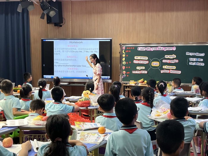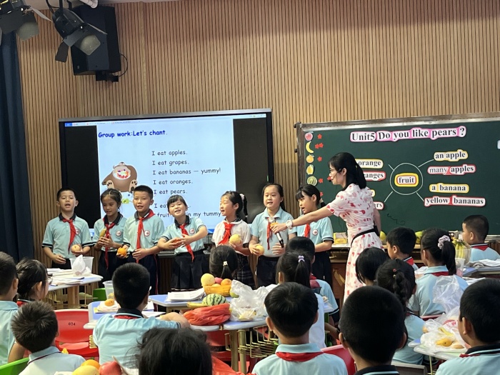 本次研讨活动围绕南头镇民安小学英语科组卢丽萍老师的课例展开,卢老师上课内容是人教版三年级下册unit5《 Do you like pears?》Part A Let’s learn&let’s chant,卢老师紧扣教学重难点,有效整合智慧平台上的丰富资源,设计了丰富多彩的听、说、读、写等语言活动。学生们在体验、练习和交流中习得语言;在任务驱动下进行小组合作探究并运用语言;通过绘本阅读拓展知识和深化语言。整堂课教学内容充实,教学环节紧密相扣,层层递进,学生们全程投入其中并大胆表达自己的想法。
