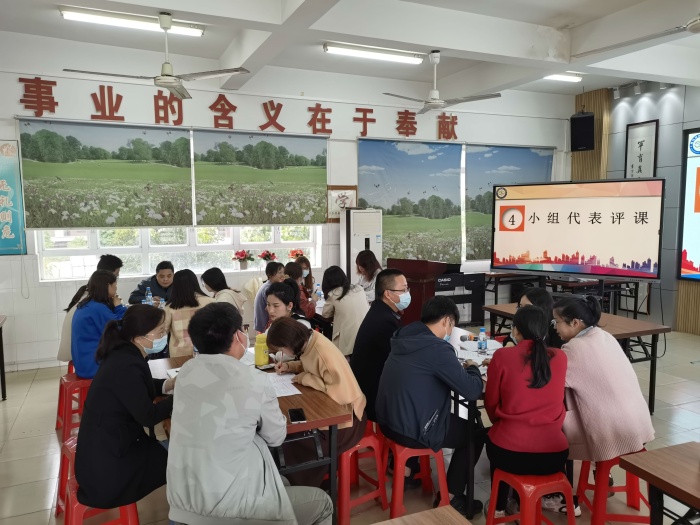 上课结束,活动进入说课环节,孟老师将她的教学设计与大家进行了分享。她从教学目标、教学方法、教学过程等方面入手,全面阐述教学内容。她的说课设计结构合理,理论依据充分,展现了良好的教学设计能力。活动中,每个小组委派一名代表进行了发言,大家各抒己见,将自己的收获与疑惑进行了交流,气氛十分活跃。