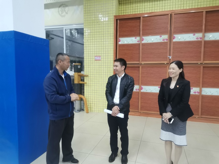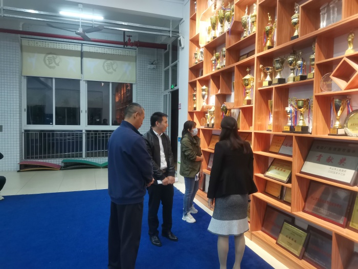 梁健海副书记一行在严校长的陪同下走访校园、教室及体艺综合楼,了解学校总体情况。梁健海副书记先是向严校长了解并实地视察了学校课后服务工作的开展情况,对学校特色发展和办学理念提出了高屋建瓴的建议。随后,梁健海副书记还来到了学校的武术室,关心学校武术队的训练情况。严校长向梁健海副书记一行汇报了学校的办学理念、武术特色和学校基本情况。在听取严校长的汇报后,梁书记希望民安小学继续把武术特色发扬光大,同时肯定了学校的办学特色鲜明,各方面工作都有敢干敢闯的精神。
