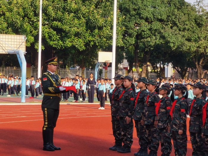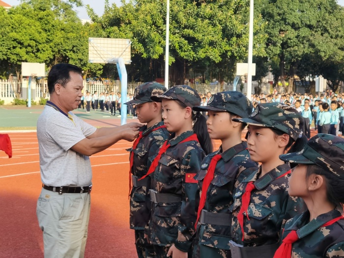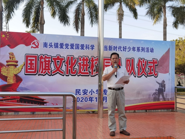 为进一步增强少年儿童的国旗意识、爱国主义精神,引领广大少年儿童践行社会主义核心价值观,树立爱国主义远大理想,11月6日,“国旗文化进校园”入队仪式活动在南头镇民安小学开展。南头镇教育和体育事务中心主任谢桂华、关工委副主任黄祺宗、退役军人服务中心工作人员李嘉铭、心硕训练营导师张福立教官、五老人员出席了本次活动。