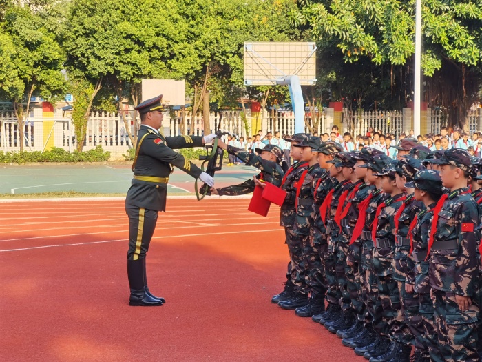 授衔仪式后,南头镇教育和体育事务中心主任谢桂华勉励全体师生,要向学习军人们的纪律作风,以高标准要求自己,从小养成良好习惯,树立远大理想,爱祖国,爱家乡,长大后为祖国做出自己应有的贡献,向国旗致敬!