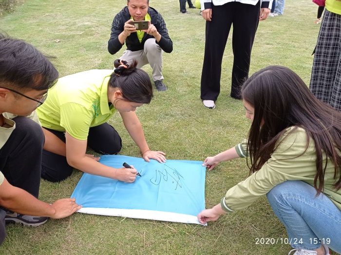随后,团队教练将全体教师随机分成了四个队伍,大家集思广益制作队旗,创作队名、口号及团队造型。接着,在各队长的带领下,全队队员经过练习后,四个队伍在规定的时间内,顺利完成乾坤大挪移、中国龙、激情节拍等项目。活动中,每位老师都全情投入,共同克服每一个困难,笑声、加油声、口号声、欢呼声响彻大地!