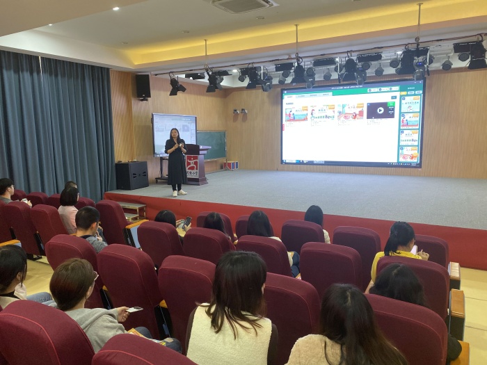 教务处的卢丽萍主任则通过具体单元的课例来展示了授课端的使用,介绍了如何通过单元主题整合资源进行单元整体教学,充分利用爱种子平台的微课等资源和平台的“自主学习”模块,提高学生预习和自主学习的能力,并引导教师们在“点点用”的基础上,改革创新,从逐步“改改用”到“创创用”,提高课堂的有效性。爱种子平台资源种类丰富,主题拓展中绘本为教学做了积极的补充 ,卢主任鼓励教师们应该整合教材与绘本的内容,为单元教学服务。