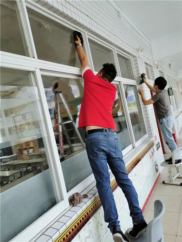 2020年的五一劳动节,升辉小学的部分家长代表和全体老师们牺牲小假期,主动参与学校开展的返学大清洁行动中来,让这个劳动节更加有意义。家长们在班主任、老师的指导和分配下,分别对教室、教师办公室、走廊、围栏等处进行清洁。校园内,教学楼上下,办公室里外,随处可见家长忙碌的身影,有的抹桌子,有的拖地板,有的搬桌椅,有的擦风扇、有的倒垃圾……家长们脸上都挂满汗珠,但却快乐地忙碌着。