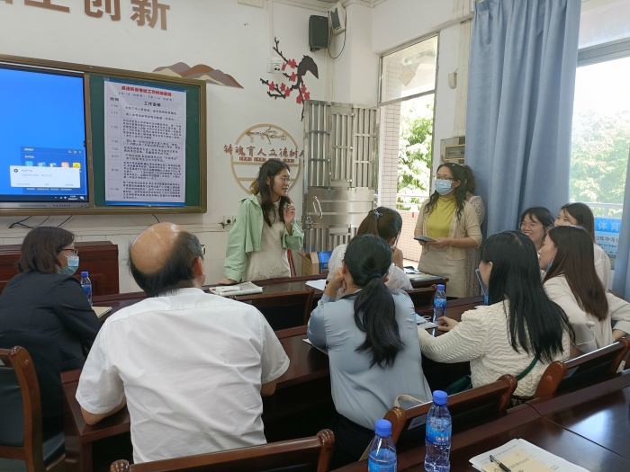 课堂观摩结束后进行教学研讨。观课老师们根据自己观课感受进行反馈、讨论,提出平板教学中的困惑。研讨内容聚焦以下几点:一是课前如何借助教师端进行常规备课;二是课中如何借助平板电脑反馈的大数据把握学生学习效果,从而推进课堂教学;三是如何借助平板电脑整合教学资源,把相关教学内容精准地推送到学生端;四是双减政策背景下,课后如何通过教师端向学生端分层发送作业等常规教学问题。初级中学的老师们积极、耐心地一一解疑,通过思维的碰撞,教师们在平板教研过程中互相学习,共同进步。