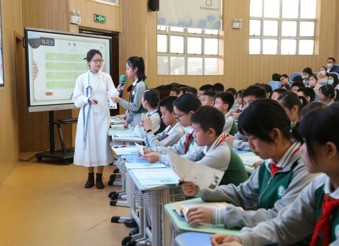 为了提炼和推广成果,并鼓励中山市中华优秀传统文化教育实验学校进一步落实教育部《中华优秀传统文化进中小学课程教材指南》和《中山市传承发展中华优秀传统文化实施方案》的要求,12月16日,中山市吟诵实验区成果展示活动在南头镇中心小学举行。中山市教育学会陈春艳会长,中山市教研室林晓洁老师、中山市中小学中华优秀传统文化教育中心教研组、中山市各中小学中华优秀传统文化教育骨干教师以及南头镇教育和体育事务中心谢桂华主任、梁柳珍老师出席本次活动。