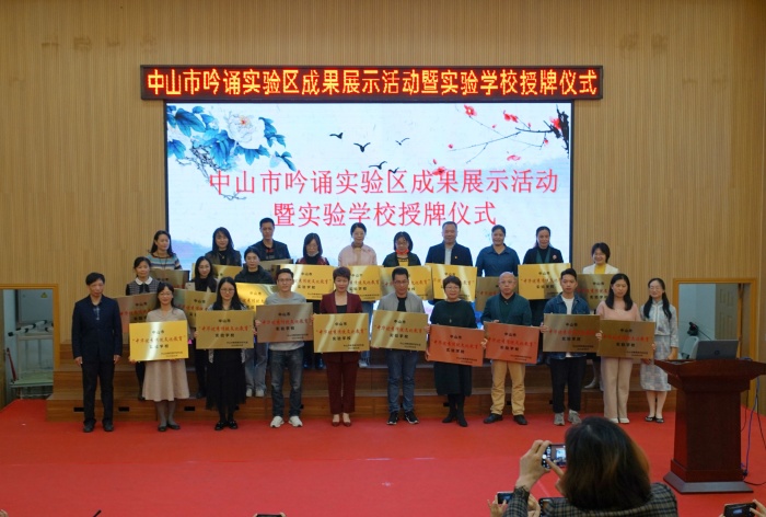 为了提炼和推广成果,并鼓励中山市中华优秀传统文化教育实验学校进一步落实教育部《中华优秀传统文化进中小学课程教材指南》和《中山市传承发展中华优秀传统文化实施方案》的要求,12月15日,中山市吟诵实验区成果展示活动暨中山市中华优秀传统文化教育实验学校授牌仪式在南头镇中心小学举行。中山市教育学会陈春艳会长,中山市教研室林晓洁老师、中山市中小学中华优秀传统文化教育中心教研组全体成员、各镇街中华优秀传统文化中心教研组长、中山市传统文化实验学校负责人以及南头镇教育和体育事务中心梁柳珍老师出席本次活动。