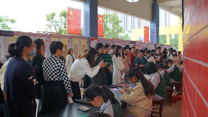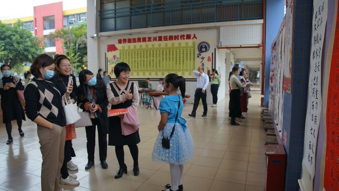 下午的活动从中华优秀传统文化教育成果展开始。与会人员漫步校园,感受南头镇中心小学开展传统文化工作的成果。一位位小解说员亲切地向老师们介绍学校的特色活动,从版画、陶泥、花灯、剪纸到书法,展演作品异彩纷呈,受到全体教师的一致好评。随后,南头镇中心小学安排了吟诵节目展演。活动中,参演学生精神饱满、感情充沛,向现场观众展示了《花灯》《上学歌》《无衣》《风雨迎春颂华章》等精彩节目,充分体现了南头镇中心小学在中华优秀传统文化工作开展上的成效。