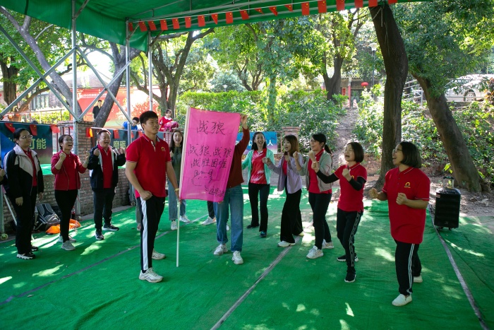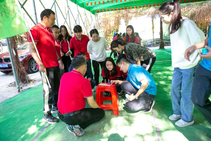随后,在团建游戏环节中,老师们进行团队竞技,一场智力和体力的精彩活动逐渐拉开了帷幕,老师们蓄势待发、齐心协力。加油声,欢呼声不断,将现场的气氛推向了高潮。比赛内容主要包括:智慧汉诺塔和齐心鼓击球。每一项比赛,都需要教师团队合作,才能最终取得胜利。教师团队顽强拼搏,昂扬向上的精神;相互包容,相互配合、相互扶持的良好品质展现无遗。大家在拉进彼此之间距离的同时,无形之中增强了集体的荣誉感、团队的凝聚力和执行力。各式各样的游戏展现了老师们独特的魅力与风采,增强了团队凝聚力。在学习党史的同时,各团队之间既合作又竞争,最终实现团队融合的目标,也培养了全体教职员工艰苦奋斗的精神,鼓励大家以热情饱满的面貌迎接未来的挑战。