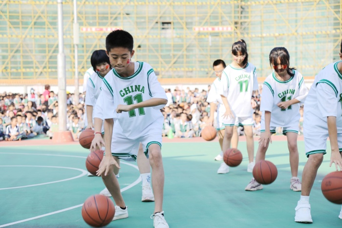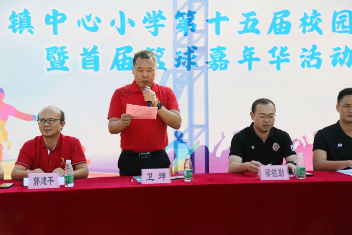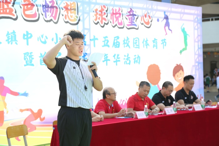 运动会开幕式上,各个年级代表方队以及教师方队带来了篮球操,活力十足,震撼全场。方队过后,校长卫坤为此次运动会开幕式致辞,他对本次运动会幕后人员表示衷心的感谢,肯定了“友谊第一,比赛第二”的体育精神。接着,南头镇教体文旅局黄再玲老师和南头镇篮球协会会长梁铭勤进行发言,倡导参赛者严守规则、尊重裁判、文明参赛、注意安全,并提出要求:希望运动员们在赛场上奋力拼搏,赛出成绩,赛出水平!随后,裁判员代表发言并表示将本着“公平公正公开”的原则为本次运动会负责。运动员代表表示会“赛出风格,赛出水平”,弘扬体育精神,将全力拼搏秀出中心学子本色。