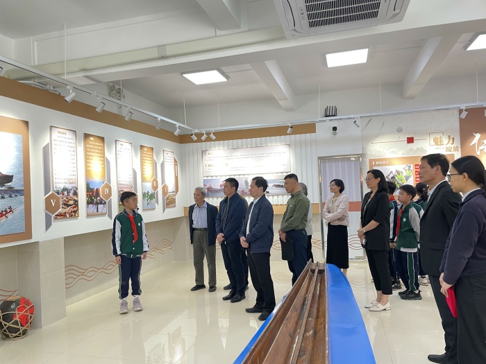 活动中,小小红领巾讲解员和非遗项目代表性传承人带领大家入馆参观。中心小学讲解员梁宏毅和杨思怡介绍到,镇党委、政府在美丽的滨江边将此旧建筑改建为南头镇非遗展示馆,主要用于展示南头镇五人飞艇赛、南头慈善灯酒习俗两项省级非物质文化遗产项目。