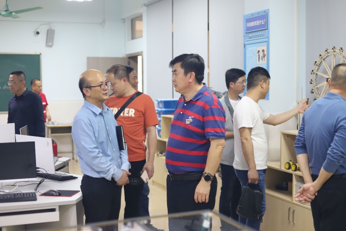 参访交流团在中心小学行政团队的带领下参观了校园环境和文化建设,走进花灯室、图书馆、科创室和心理辅导室,了解中心小学打造“弘扬传统文化”、“助力科创项目”、“关爱心理健康”等品牌课程的情况,将德育、传统文化、科创实践等素质教育有机结合的路径,对中心小学办学特色连连称赞并深受启发,对政府重视、学校建设、专业发展等工作给予了充分肯定。