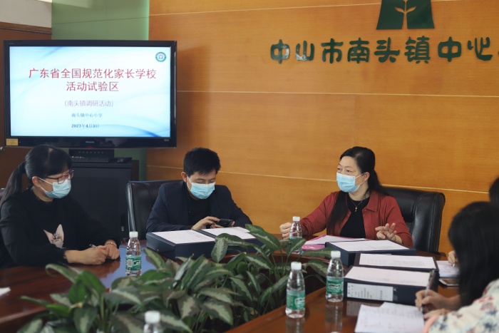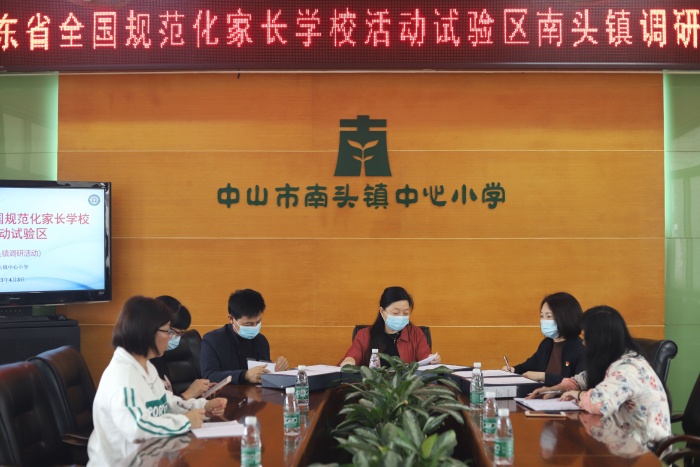 为深入贯彻落实习近平总书记关于注重家庭家教家风建设论述精神,不断巩固、提升“全国规范化家长学校活动实验区”家长学校办学成果,4月3日上午,南头镇教育和体育事务中心德育专干郭淑娟老师一行人到南头镇中心小学开展调研工作,学校吴婉韵副校长、吴婷环主任等参加了会议。
