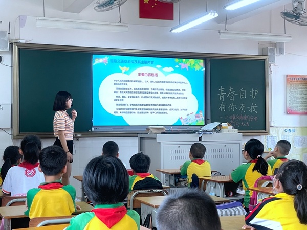 各班主任根据学生年龄特征和出行特点,从交通安全防范教育入手,利用有趣的交通安全课件,阐述道路交通安全重要性,普及交通安全常识,讲解安全步行、安全乘坐交通工具和预防交通事故的措施,教育和引导同学们在日常出行过程中养成自觉遵守交通秩序、文明出行的良好习惯。