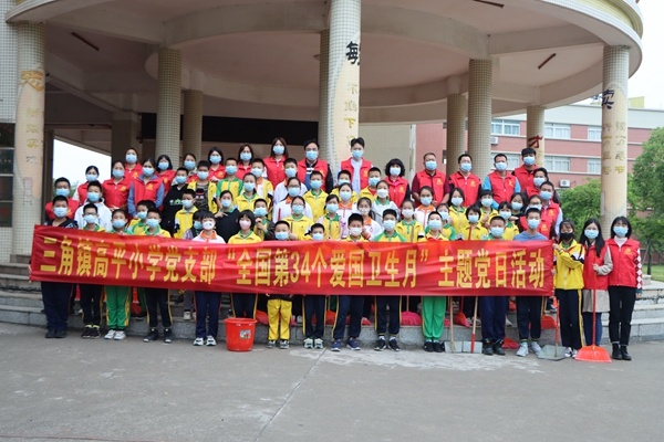 2022年的4月是第34个爱国卫生月,今年的活动主题是“文明健康,绿色环保”。三角镇高平小学高度重视爱国卫生工作,为建设整洁、优美、文明的校园环境,切实保障师生身体健康,结合疫情防控工作实际情况,4月18日,学校组织六年级的师生和全体党员教师开展爱国卫生校园清洁活动。