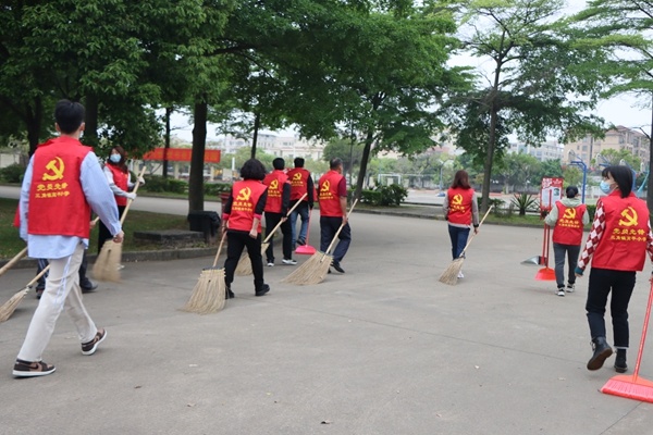 人间四月,天气回暖,校园周边一些路边的野草长得很快,中间还夹杂着一些塑料、瓶罐、淤泥等垃圾,容易滋生蚊虫,影响环境和师生的身体健康。党员教师身穿红马甲,拿起扫帚、铲子等劳动工具,对校园周边绿化带、主干道认真清理打扫,拔出绿化带上的杂草。在劳动过程中,党员教师分工明确,各司其职,积极热情地参与其中,不放过任何一个卫生死角。“十年树木,百年树人,立人先立德”。对于学生们最好的德行教育方法就是教师们的言传身教。