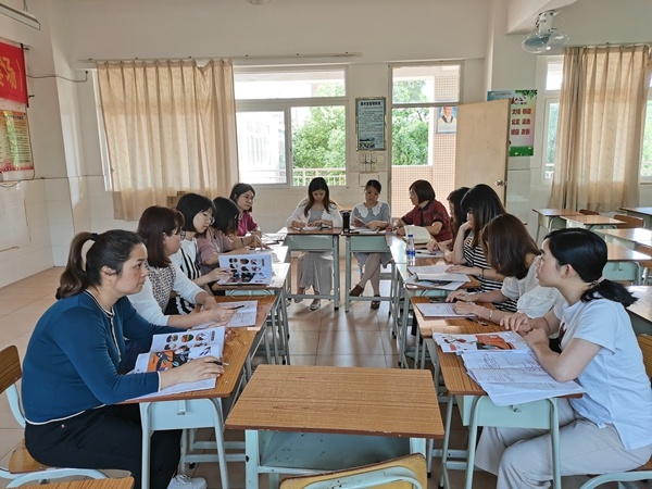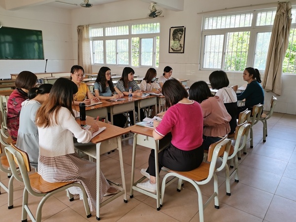 观摩结束后,英语科组长梁志敏老师结合科组课题,带领全体科组成员开展研讨学习。每一位老师都各抒己见,分享了自己本节课对“图片环游”英语阅读教学模式的体会。在信息的交汇中,在思维的碰撞下,大家对课题有了更深的领悟和思考。最后,课题主持人冯小清老师指明了下一阶段课题研究的方向,并提出在处理文本时要紧扣“文本主题”“文本内容”“文本特征”“语言特点”和“作者观点”等要求,力求不断夯实提高英语课堂教学设计的效度。