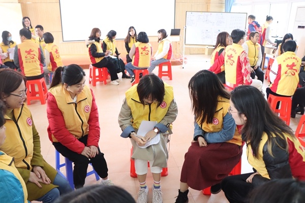 活动开始,林玉玲老师开门见山道出开展志愿服务应急能力提升培训的目的,接着组织学员进行分组,要求在组内限时收集组员信息,并分组汇报收集成果,以此为契机,指导学员们如何收集有效信息。随后围绕“志愿服务中遇到什么突发事件”的核心问题,从“如何应对、哪方面是掌握得好、哪些是有待提升”等方面展开分组讨论。各学员积极参与活动,纷纷上台交流分享。最后,林老师以现场分享的事件为案例,通过生动形象的讲解,规范的指导,把应急救护知识传授给教师们。现场气氛活跃、融洽,学员收获满满。