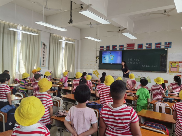 随后,在校长莫文杰的带领下,孩子们分组参观了校园的教学楼、运动场、党史学习园、劳动基地“春华秋实园”及各功能场室。他们用自己的小眼睛仔细观察这所校园里的每一个角落,认真寻找着小学和幼儿园的不同之处,宽阔的操场、高高的教学楼、不一样的课桌椅......每一样都显得如此新奇。