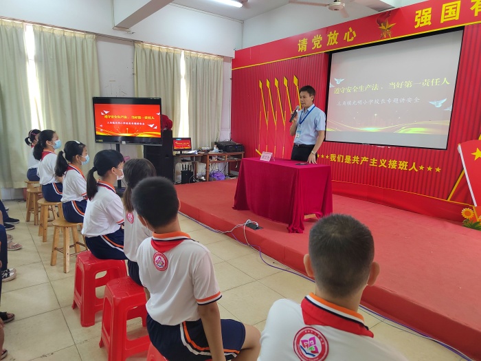 孩子是祖国的未来,民族的希望,每个孩子能否安全、健康地成长,不仅关系着千家万户的幸福,也关系着国家的兴旺和民族的振兴。为提高学生的安全防范意识,增强学生的安全防范能力,全面普及校园安全常识,6月9日下午,三角镇光明小学组织开展了主题为“遵守安全生产法,当好第一责任人”的安全教育主题讲座。