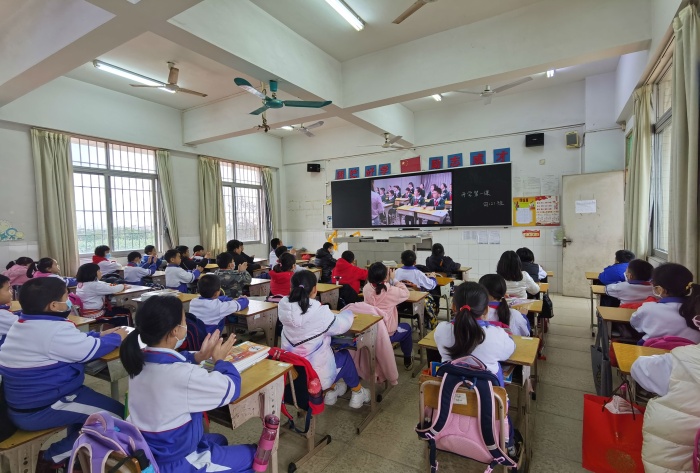 开学典礼前,各班同学在课室观看《2022年春季学期中山市中小学心理健康教育开学第一课》。东区朗晴小学雷小云老师以“新学期,变!变!变!”为主题,围绕变化无处不在、接纳变化及影响、积极面对变化三个方面引导学生,帮助学生以稳定的情绪、积极的态度迎接新学期。