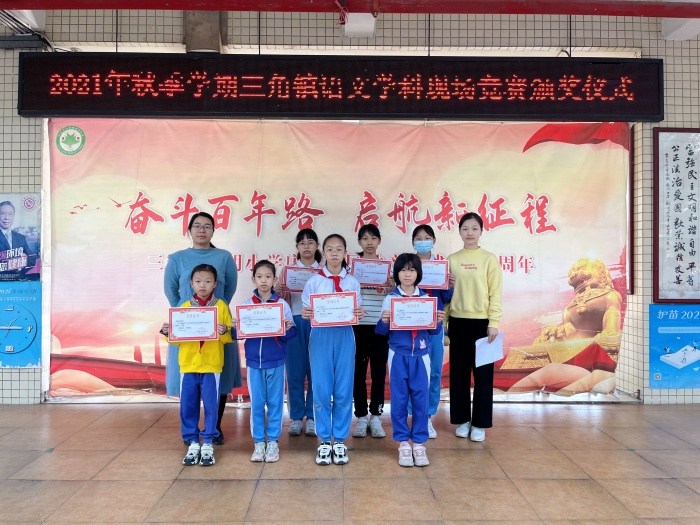 为进一步推进阅读课程和书香校园建设,培养学生“爱读书、勤读书、读好书、提升阅读写作素养”的学习主体意识,11月10日下午,三角镇在四海学校举办主题为“妙笔书童真,书香进校园”四至六年级语文综合能力竞赛。光明小学选派了7名同学参加现场角逐,均获佳绩。