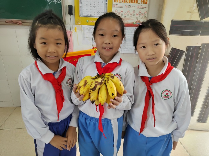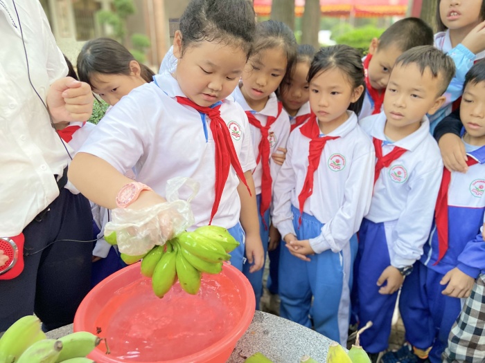 秋风习习,瓜果飘香,又到了丰收的季节,学校附近的香蕉树上挂满了一串串待成熟的香蕉。11月1日,三角镇光明小学开展“如何催熟香蕉”劳动实践活动。