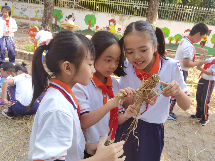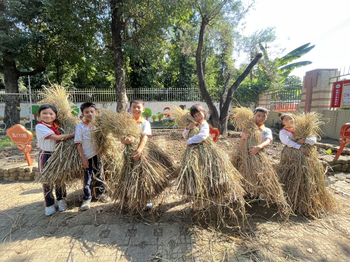 从今年春耕开始,怀着对稻谷的好奇之心,孩子们化身“小稻农”,亲身体验农耕文化,插秧、除杂草、收割,展开了一段孩子与水稻的故事。