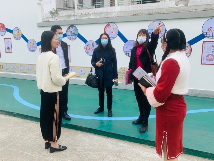 莅临指导的专家老师们抵达蟠龙小学后,先随学校行政参观了校园传统文化长廊,简要了解学校文化布置,感受校园文化。