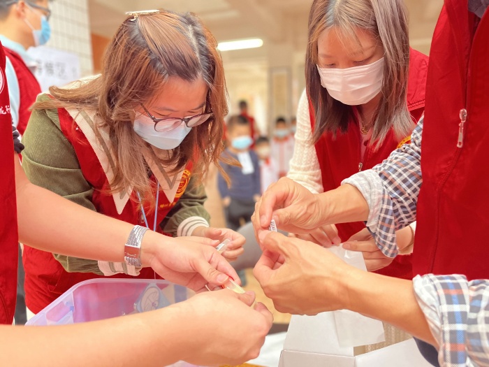 学生核酸采样时,班主任、协调员、信息采集员、采样员、秩序引导员等各居其位、各司其职,现场共有多条通道同时进行检测,医护人员动作娴熟,学生有序排队,即采即走、不作停留,整个班级采样完成迅速高效。