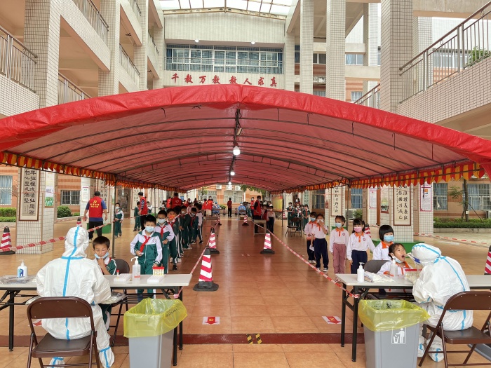 当前国内多地疫情暴发,疫情防控形势异常严峻。为筑牢校园安全屏障,有效阻断疫情传播,保障师生员工生命健康安全,在上级的统一部署下,3月21日三角镇蟠龙小学启动了全校人员大规模人群核酸检测行动。