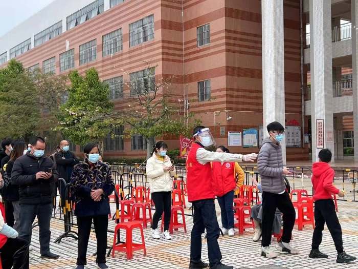 1月14日与1月18日,在三角镇党委、政府统一部署下,三角镇蟠龙小学志愿者服务队积极开展全员核酸检测志愿服务活动,有序进行核酸采样工作。