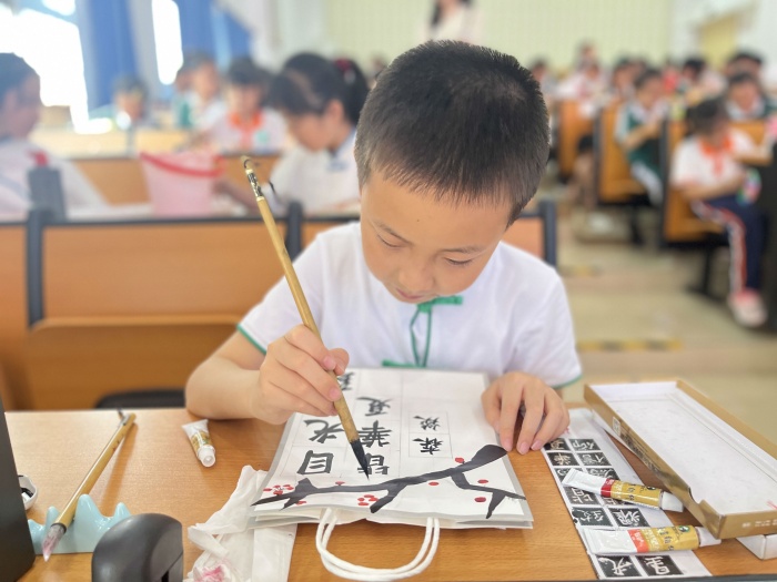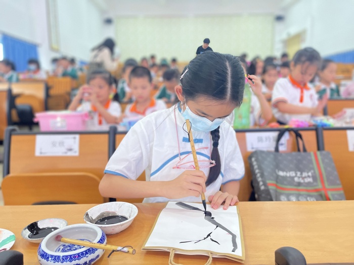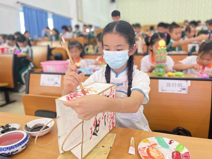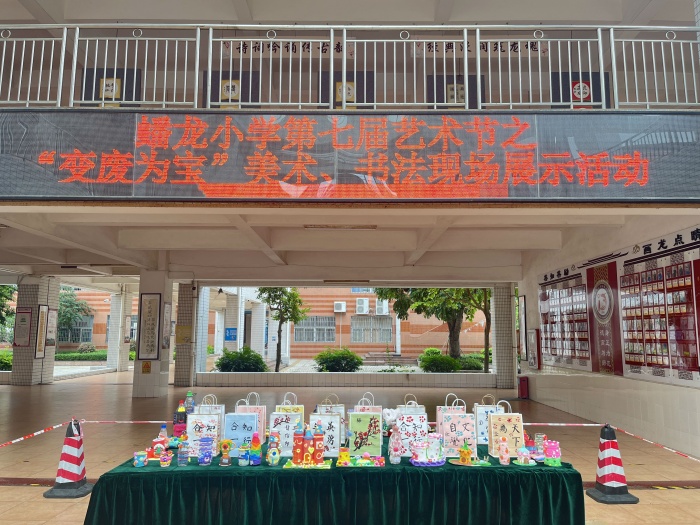 为了培养学生动手、动脑能力和创新精神,传播优秀传统文化活跃校园文化,丰富学生的课外生活,提高学生爱护环境、珍惜资源、合理利用资源、变废为宝的环保意识,5月24日下午,三角镇蟠龙小学举办“喜迎二十大 奋进新征程”第七届艺术节之“变废为宝”美术、书法现场展示活动。学生通过自制作品的方式,利用废旧的塑料瓶、旧纸袋,想象、组合、尝试、体验创新设计的乐趣。