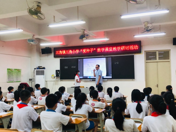 为了进一步提高数学课堂效率,优化数学教学模式,提高教师信息技术教学能力,提升教学质量,深化“爱种子”教学平台在日常教学中的使用,2022年4月29日上午,三角小学数学科组在二楼多媒体室进行课堂教学研讨活动。