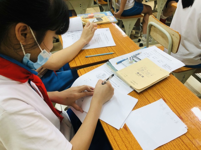 此次教研活动由学校德育处吴科桂主任带来一节精彩、高效、富有探究性的数学课——《异分母分数加减》。上课伊始,吴主任让学生对课前布置的前置性探究单进行交流和分享,学生积极地讲解自己的知识探究过程,为后续的学习做了很好的铺垫。