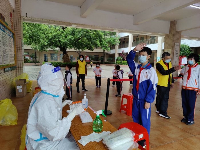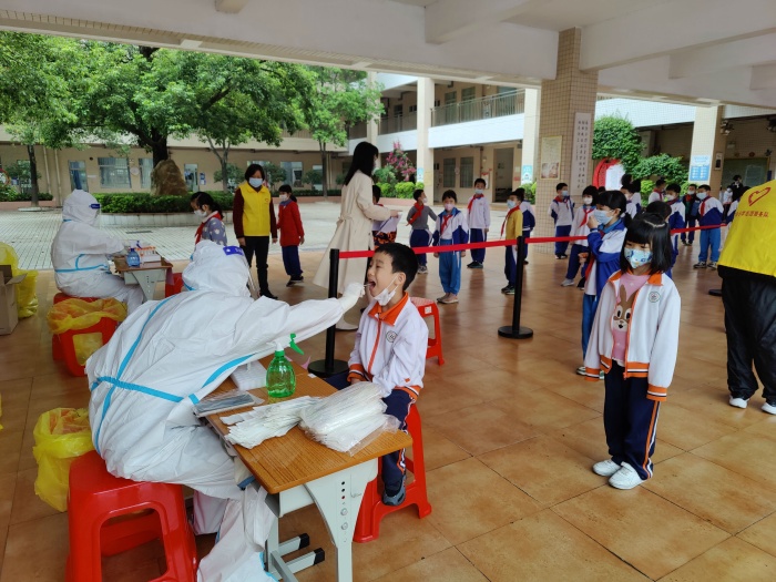 当前,国内新冠疫情防控形势复杂严峻。为进一步做好疫情防控工作,切实保障学校全体师生的生命安全,根据上级的统一部署,4月18日下午2时,三角小学组织全校师生开展核酸抽测工作。