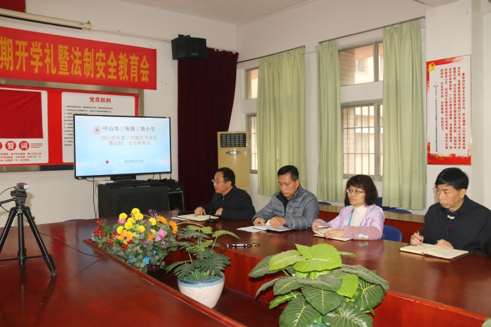 学校通过直播的方式为全体师生开展2021学年第二学期开学典礼暨法制安全教育会。