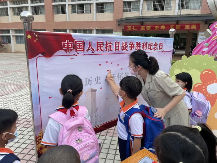 为深入贯彻习近平总书记关于“大思政课”建设的重要指示精神,陈校长还以《铭记历史,珍爱和平》为主题,为全体学生讲授开学第一堂思政课。9月3日正是中国人民抗日战争及世界反法西斯战争胜利77周年纪念日,为缅怀英烈,传承红色基因,陈校长带领全体学生回顾了中国人民抗日战争的峥嵘岁月,向同学们讲述了抗日战争的相关历史、抗日战争的伟大意义,同学们端坐在座位上,认真倾听,时不时点点头,好像暗下决心,默默树立为国争光的信念!陈校长最后向全体学生提出新学期寄语,希望全体学生大力弘扬伟大抗战精神,磨练坚强意志,努力做祖国和人民需要的好孩子。
