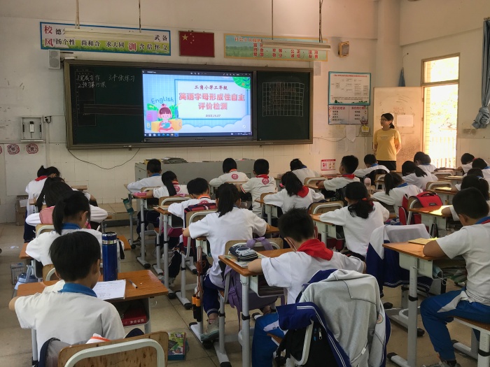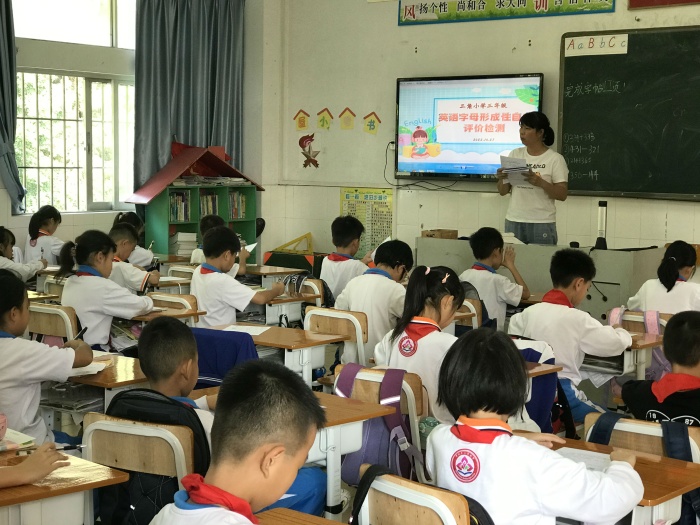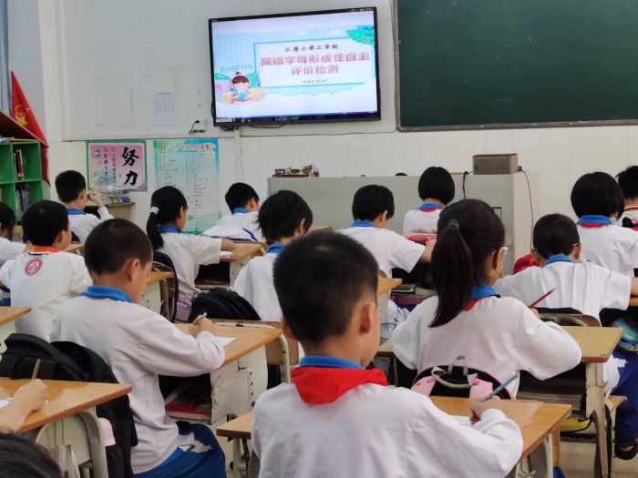 为了使学生能热爱并规范使用英语字母,正确认读和书写26个字母,了解字母在单词中的基本读音,帮助学生形成语音意识,夯实学生的英语学习基础,培养英语学习兴趣。10月27日下午,三角镇三角小学开展了三年级英语字母形成性自主评价检测活动。
