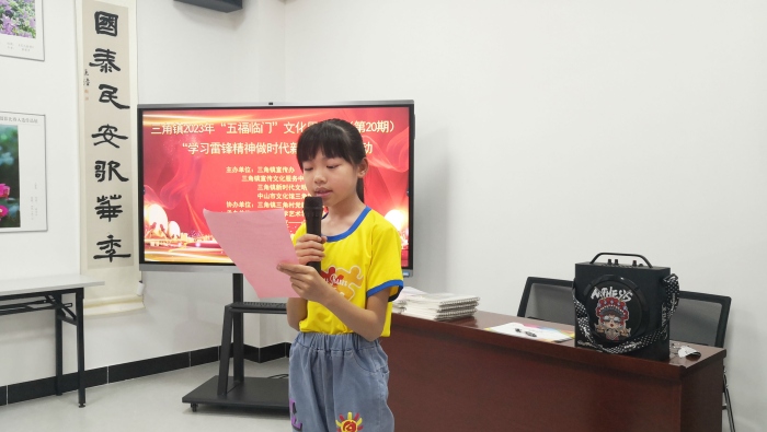 为进一步加深社员们对雷锋精神的理解,激励社员们积极弘扬践行雷锋精神并在新时代下赋予雷锋精神更加丰富而深刻的内涵,助力社员们在雷锋精神的滋养陪伴下更加健康茁壮地成长,3月18日上午,三角镇三角小学海鸥文学社的部分社员在中山市文化馆三角镇分馆参加了由三角镇宣传办、三角镇宣传文化中心(图书馆)等单位联合主办的三角镇2023年“五福临门”文化周活动(第20期)“学习雷锋精神做时代新人”共读活动。