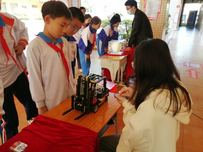28日下午,主办方为三角小学的全体师生带来了精彩有趣的科普活动。活动划分为两大区域,分别是设备展示区、机器人体验区和模拟竞赛区。在设备展示区,同学们可以近距离欣赏、研究部分科技机器人诸如:卡片发射机、三角龙机器人、仿生恐龙机器人等。一个个生动有趣,科技感十足的机器人吸引了不少师生驻足观看。在现场工作人员的讲解介绍下,不少同学互相讨论,形成了热烈的科学研究、讨论氛围。