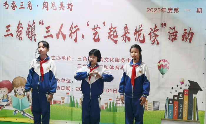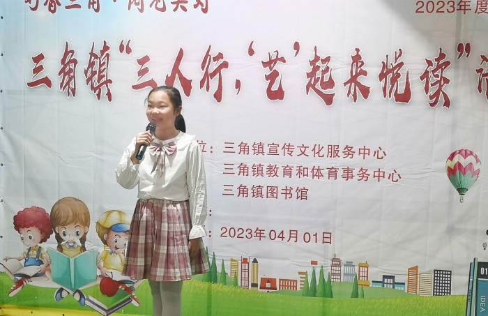 4月1日,由三角镇宣传文化服务中心、三角镇教育和体育事务中心、三角镇图书馆联合主办的2023年度“三人行,‘艺’起来悦读”活动第一期如约在中山市文化馆三角镇分馆举行。三角小学海鸥文学社的十多位社员和家长们同台竞技,一起“艺”起来,让悦读越精彩。