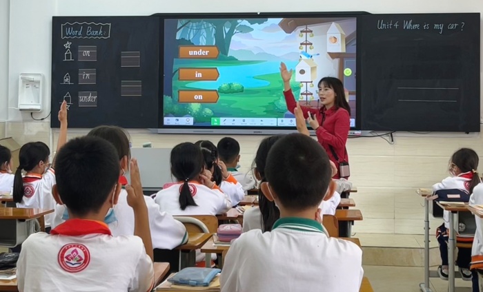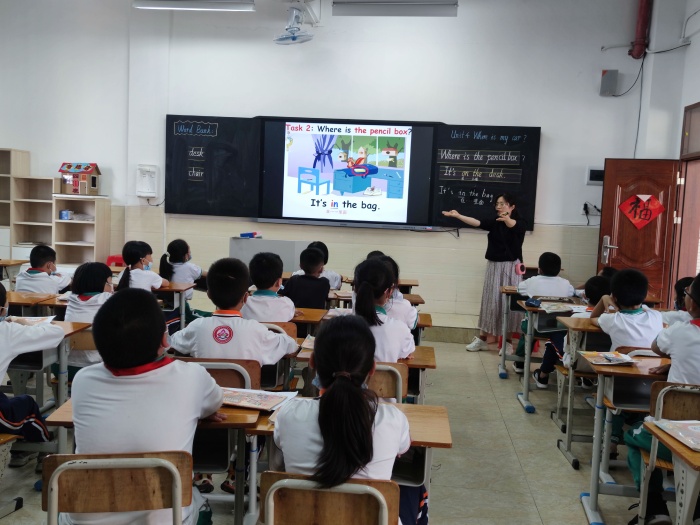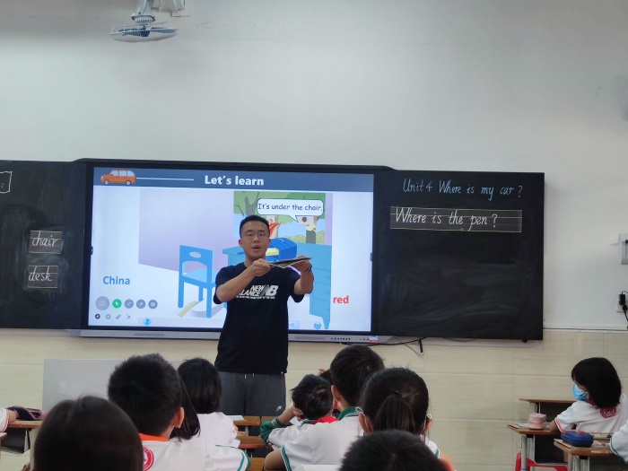 第一节课中,陈清莲老师借助“希沃白板5”,结合现代信息技术,给同学们和听课老师带来一节别开新面的高技术课堂。陈老师通过歌曲互动、游戏巩固、实物教学、同伴合作等丰富多彩的活动展开课堂,让同学们在愉快的氛围中,掌握本节课的知识语言,在活跃的课堂中,攻破知识的重难点。