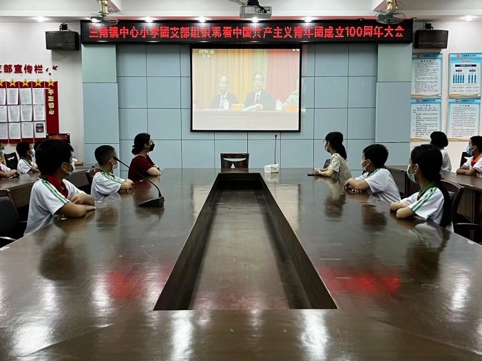 百年峥嵘,芳华正茂,青春向党,开创未来。2022年,中国共产主义青年团成立100周年,为庆祝中国共产主义青年团建团100周年,引导广大少先队员树立、培育正确的理想信念,坚定爱国之心,强国之志,传承红色基因、赓续精神血脉。5月10日,三角镇中心小学团支部组织全校学生观看中国共产主义青年团成立100周年大会活动。