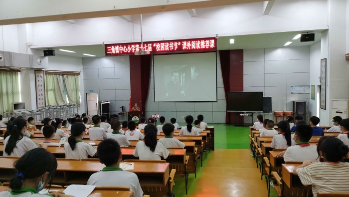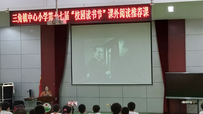 四月芳菲好,读书正当时。为了深入实施素质教育,创建良好的校园文化,营造浓郁的读书氛围,激发师生读书的兴趣与热情,让每一位学生都亲近书本,喜爱读书,从经典中汲取精神力量,健康成长,4月25日下午,三角镇中心小学六年级全体学生和语文老师、班主任共同奔赴了一场共读革命故事书籍之旅——《红岩》阅读推介课。
