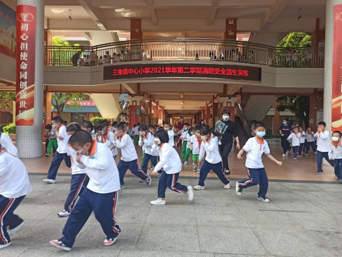 时值春季,气温回升,风干物燥,又到了火灾事故的多发期和防火的关键时期。为保障学校公共安全和处置突发公共事件的能力,最大限度预防和减少消防安全事故造成的伤害,同时也为提高学校师生火灾事故的应对能力,积极营造校园良好的消防安全环境,4月14日下午,三角镇中心小学开展2021学年度第二学期消防疏散演练活动。