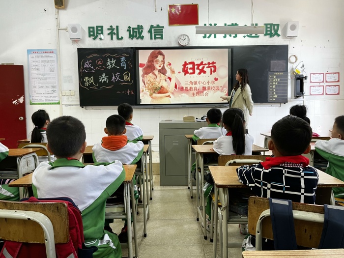芬芳三月,桃花夭夭。为弘扬中华民族传统美德,培养学生关心他人、尊敬父母、孝敬长辈,心怀感恩之心,在“三八”国际妇女节来临之际,三角镇中心小学开展了“三八”国际妇女节系列主题教育活动。