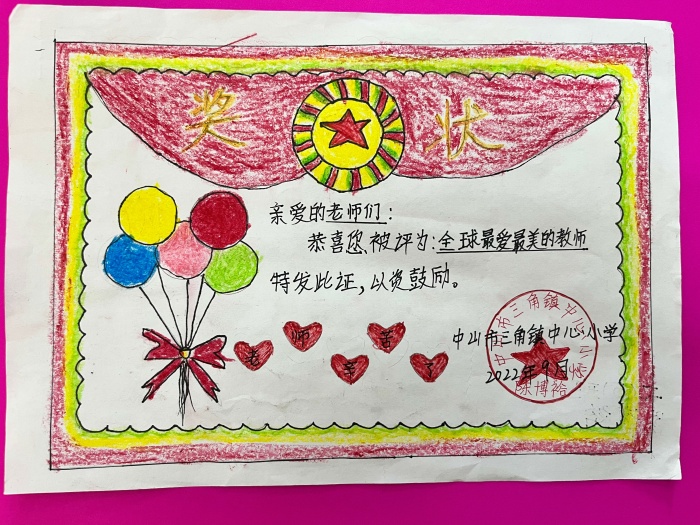 9月8日,学校组织四到六年级学生开展了教师节感恩卡制作活动。同学们表现出浓厚的兴趣,纷纷踊跃参与。在活动过程中,同学们怀着对老师的感恩之情,尽心构思创意,尽力动手操作,发挥自己的想象力,将对老师的真情实感通过写、画、涂等方式表达在卡片上,用自己的爱和智慧凝聚出一张张五彩纷呈、绚丽夺目的感恩卡。许多学生的作品主题鲜明、构思巧妙、色彩丰富、制作精美,充分表达了他们对老师的敬爱之情。